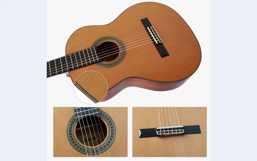 Aiersi SC02CM Handmade Solid Top Classical Guitar - 39" Traditional Spanish Style with Solid Spruce or Cedar Top, Mahogany Neck and Body, Rosewood Fingerboard, Gloss Natural Finish, Vintage Craftsmanship